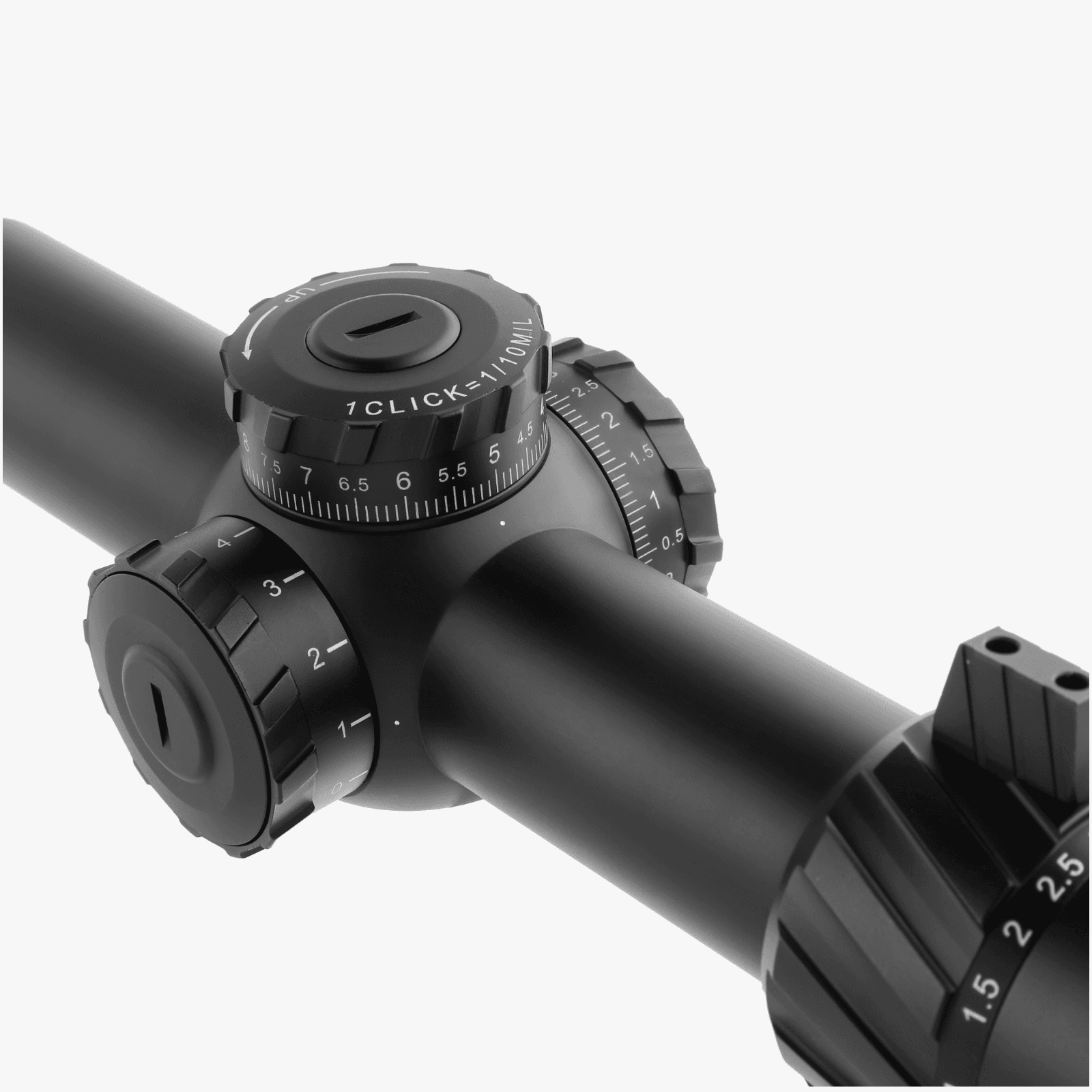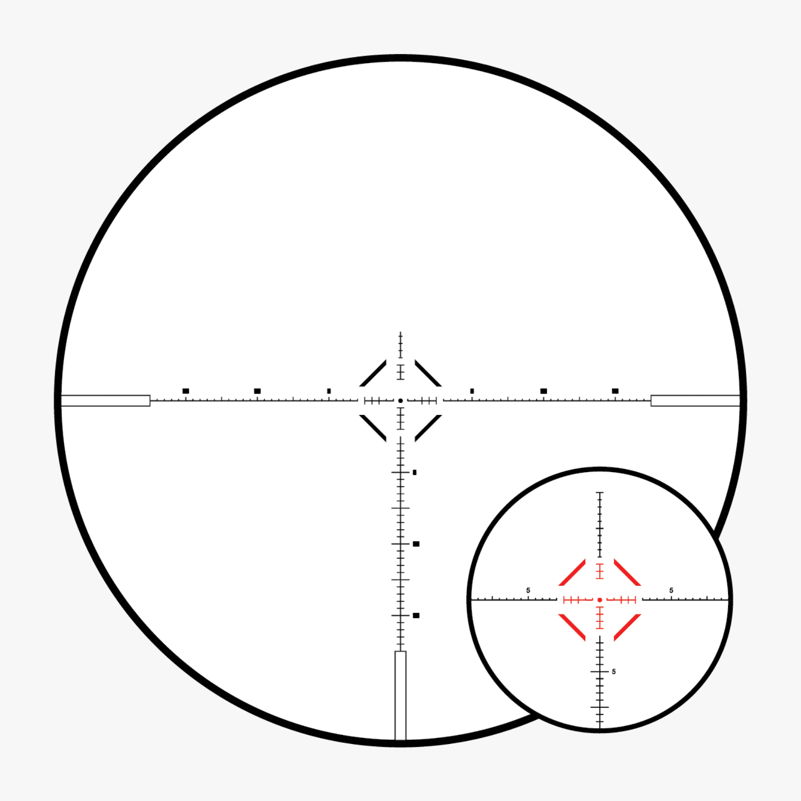- 0.5 MRAD sub-tensions between each hashline offer precise measurement and adjustment.