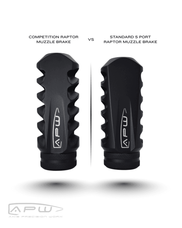 Purpose-built for the competitive marksman, the APW Competition Raptor Muzzle Brake takes the proven design of our Raptor range and refines it for maximum accuracy under match conditions. Its advanced port system disburses blast upward while applying downward force on the rifle, keeping the muzzle flat and stable for unmatched shot-to-shot precision.